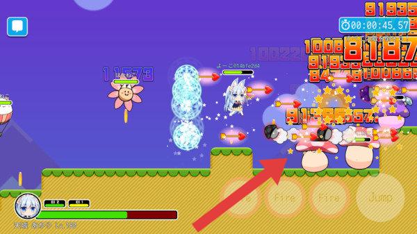 3、呈现了休闲竞技类的趣味闯关玩法,有角色、战斗数值、场景元素(花朵、蘑菇状平台等)及操作按钮,和经典玩法有相似的跑酷闯关体验。