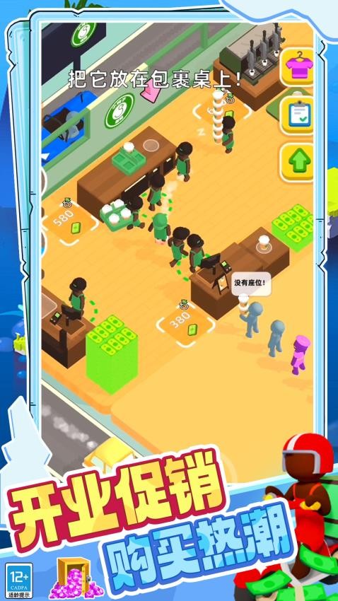 3、店铺扩张升级玩法,玩家通过积累资金可扩大营业面积、增加座位数量,从街边小店发展为知名连锁品牌。