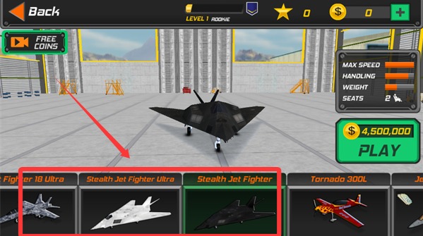 2、然后选择一架心仪的飞机,就可以进入关卡了。