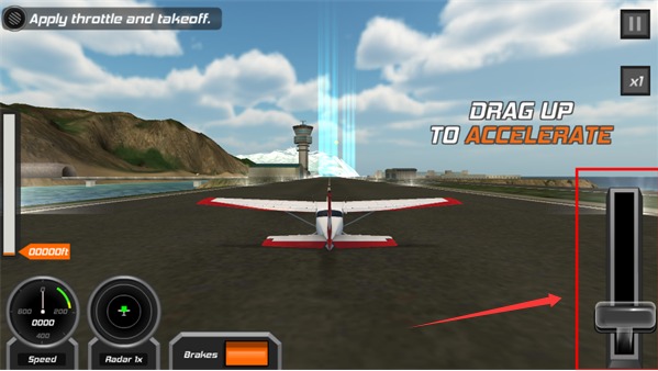 3、将“助推器”向上推可以使飞机加速,上下转动手机可以调整飞机的飞行高度,左右转动手机可以调整飞机的飞行方向。