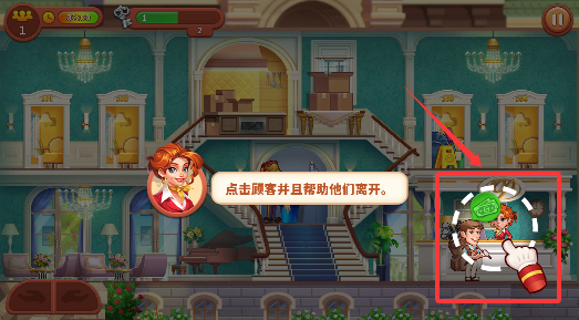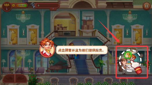 1、进入游戏界面,点击顾客即可为其安排合适房间,满足不同旅客的住宿需求。