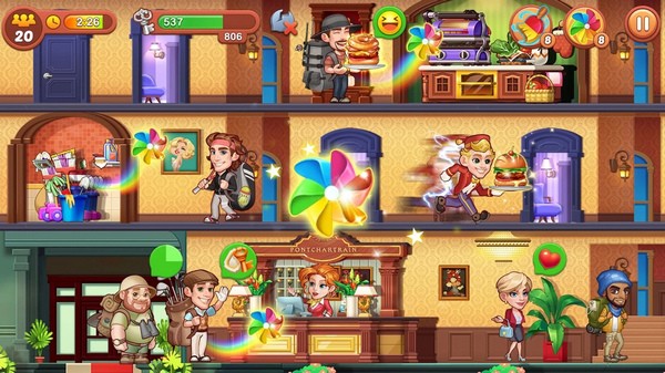 - 疯狂酒店最新版带来趣味十足的模拟经营体验,在这里,您将化身酒店管理者,通过合理调度人手提升服务品质,让每位顾客满意而归,随着业务扩展还能解锁新门