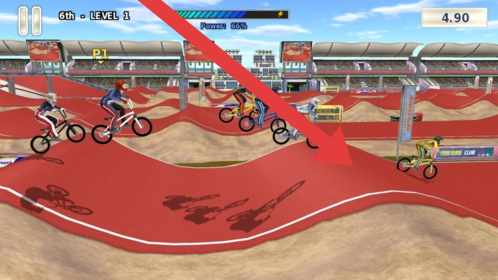 2、小轮车比赛,按提示操控角色(6th-LEVEL1),在红色赛道把握重心,飞越坡道,躲避障碍,冲过终点。