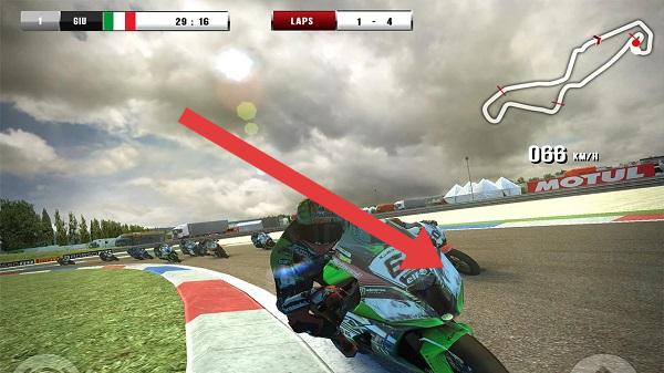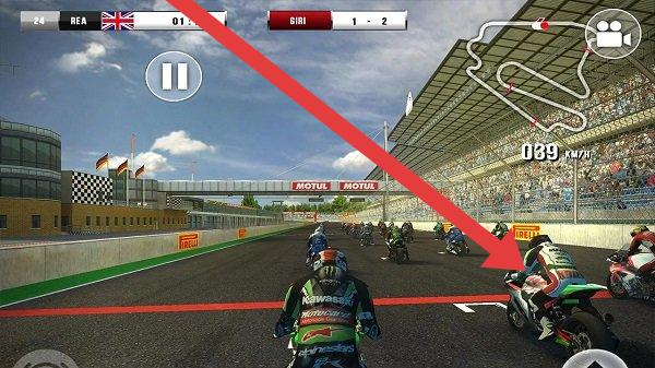3、遇到对手,在直道加速超车,注意车流(多辆摩托),按小地图(赛道轮廓)规划路径,提升排名。