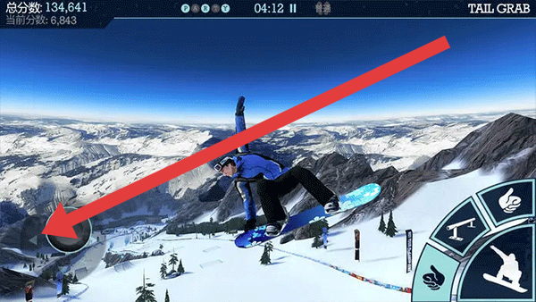2、挑战U型道沿滑道滑行,遇坡道时按提示触发大腾空,在空中用特技按键(旋转、抓板)加分。