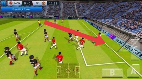 1、任意球阶段,点击“B”按键调整射门角度,瞄准球门死角(如远角),避开人墙,释放射门。