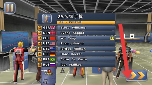 3、25米气手枪项目,用“SteveWilliams(GBR)”,稳定瞄准,按射击键,命中靶心,提升环数得分。
