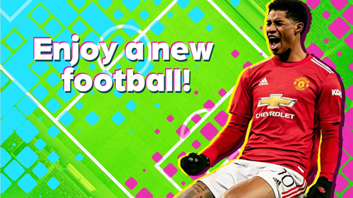 2、进入比赛,点击“Enjoy a new football!”界面,确认球队(曼联),熟悉球员特性(如速度、射门),为策略布局做准备。