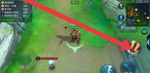 2、进入对战,用“移动”摇杆控制走位,开局跟队友(看小地图),敌方英雄靠近时,按“技能”键先手消耗。