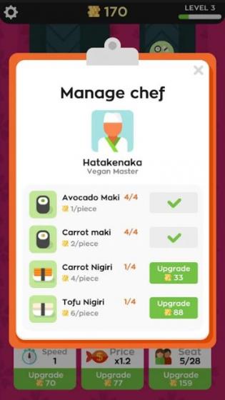 1、自由经营:玩家可以尽情经营自己的寿司餐厅,并与全球玩家互动竞争。