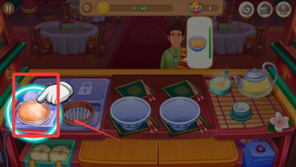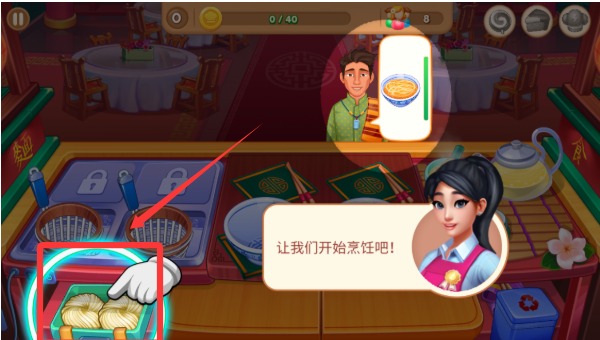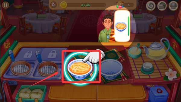 3、再次点击装盘好的面条就可将其递交给顾客了。