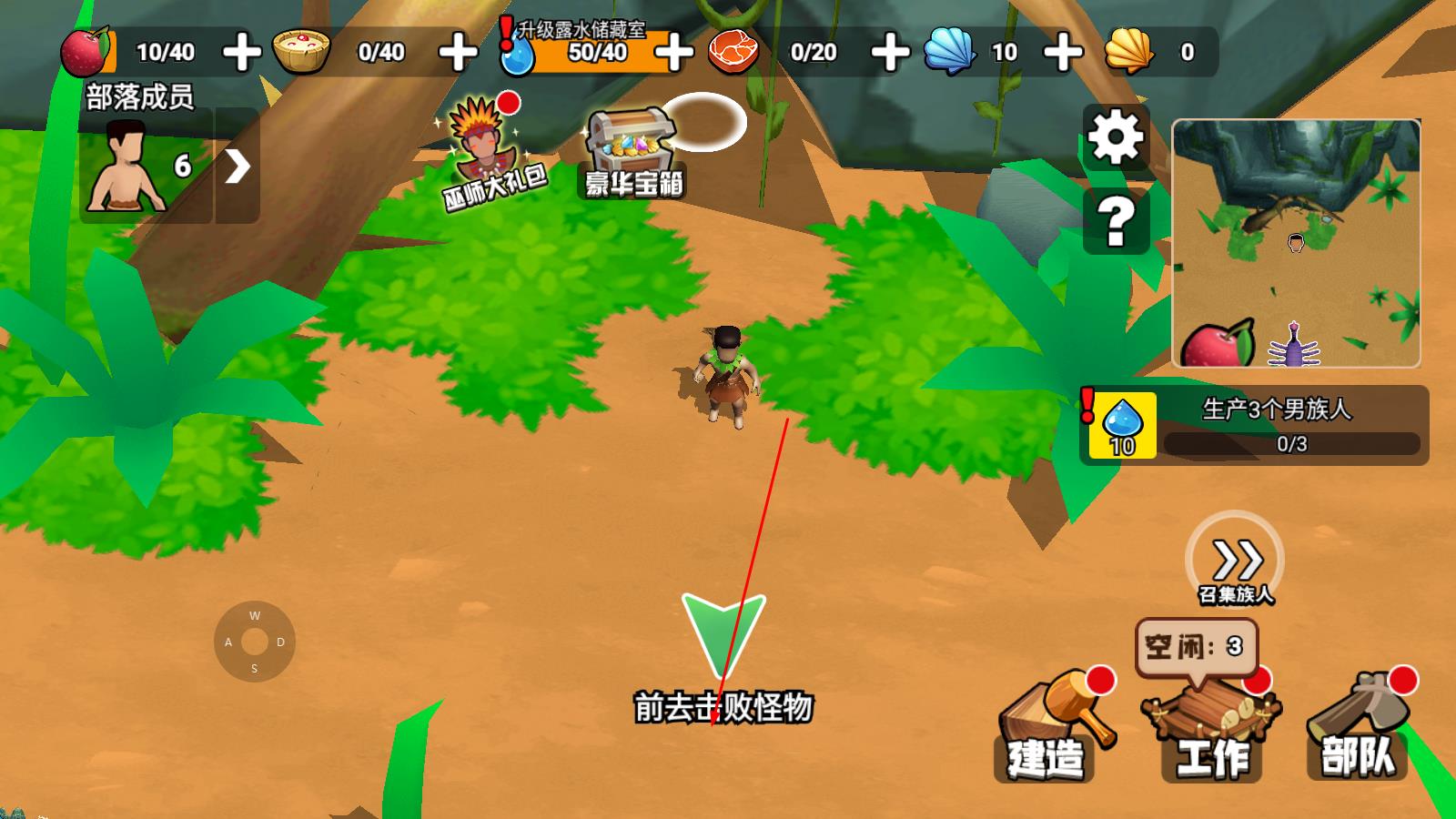 1、资源采集:操控族人在场景中收集果实、木材、矿石等资源,满足日常消耗与建筑升级需求,确保生存根基。