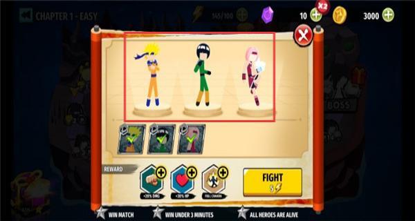 3、多样玩法拓展:剧情模式还原动漫经典战役,挑战模式限时击杀BOSS,奖励稀有的火柴人碎片。