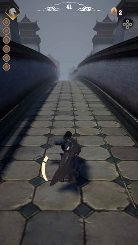 2、障碍敌人应对:在跑酷过程中灵活运用轻功武学,躲避塌陷桥梁机关箭雨并击退各类敌人。