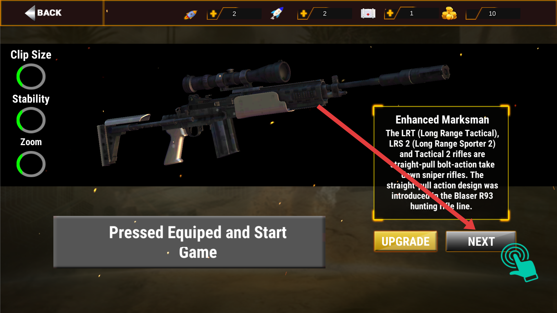 2、选择一把武器,后期赚了钱还可以回到该页面点击UPGRADE进行升级改造。