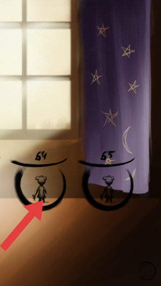 2、展示了游戏内场景,有标为64、65的两个圆环及对应角色,呈现关卡选择或场景切换等实体信息,延续了独特的艺术风格。