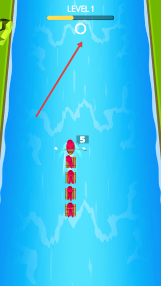 1、简易操控与魔性反馈:单指划动控制木筏方向,长按屏幕加速,碰撞岩石时木筏摇晃并弹出“眩晕星星”动画,搭配落水者呼救音效与轻快BGM,营造轻松解压的游玩氛围。
