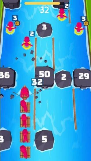 3、遇到带数字的石块障碍,调整木筏路径撞击,利用撞击消除障碍,推进救援关卡。