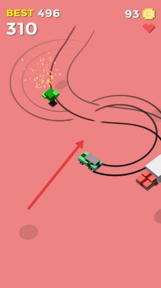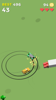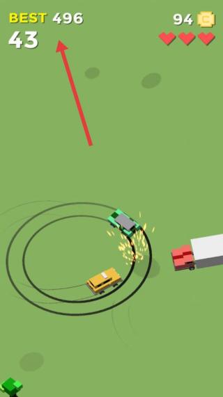2、操控小车在赛道漂移、绕圈,躲避碰撞,积累“BEST”分数(如496、367)。