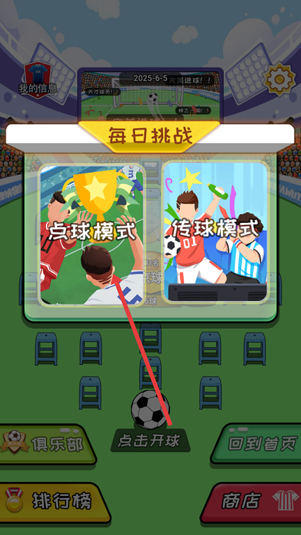 1、点击开球,单指按住屏幕蓄力,松开瞬间让足球发射,力度条就是你的命根子。