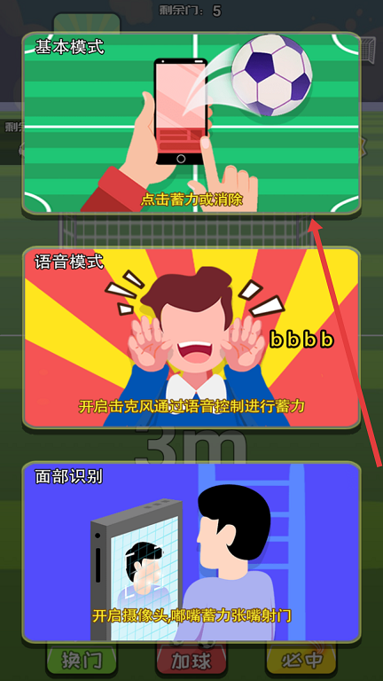 2、选择游戏模式,球门每轮都会往后挪三米,第三次挑战时球门已经快贴到地平线了。