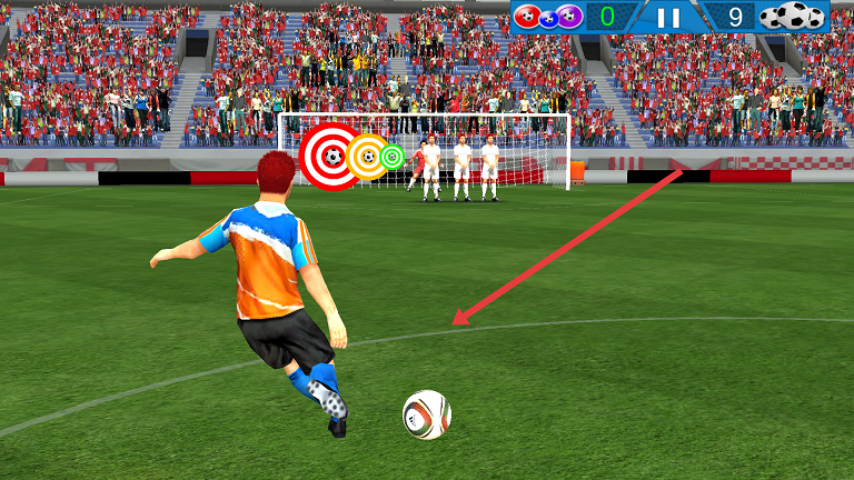 3、手指上滑射门,球会根据上画弧线射出不同角度,通过训练大大提升手感。