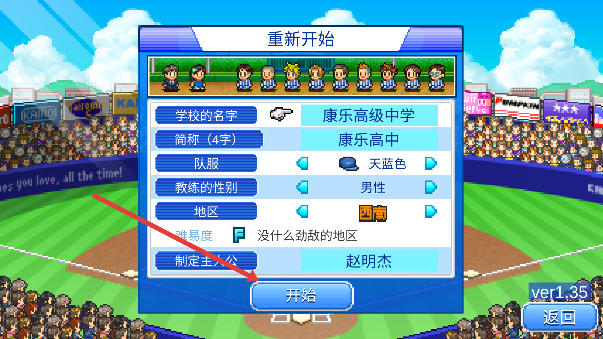 1、点击开始游戏,先创建角色信息,制作主人公和代表参赛学校。