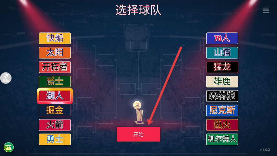 1、点开始进入游戏,左手虚拟摇杆控制风骚走位,右手按键触发暴扣或远射三分。