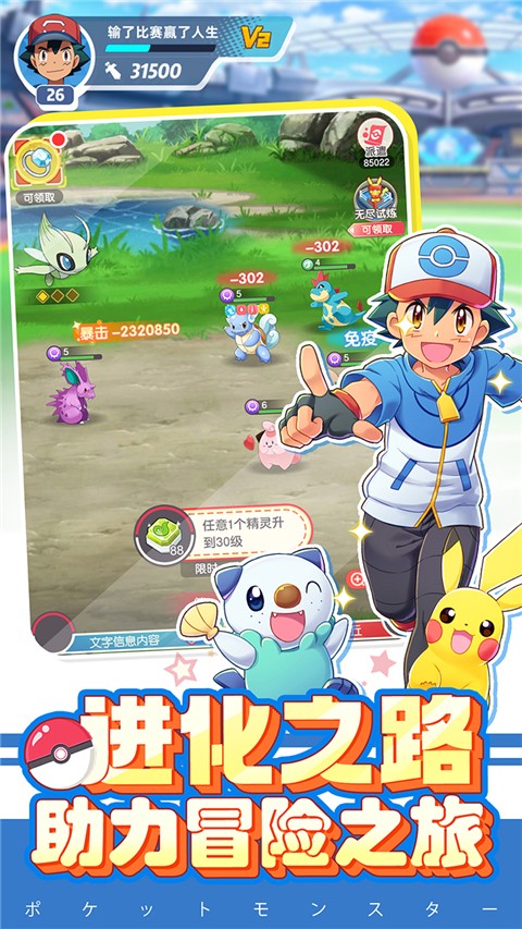 2、多元养成体系:提供升级、升星、装备打造、技能学习与升级等多种养成途径,比如给皮卡丘穿上专属电气增幅装备,提升电系技能伤害,全方位提升小精灵战斗力。