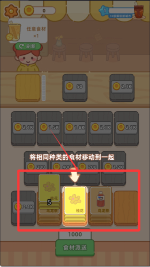 1、完成奶茶订单,玩家需根据顾客订单要求,从卡牌库中找出对应原料卡牌,按正确顺序叠放,制作出满足要求的奶茶,完成订单获得奖励。