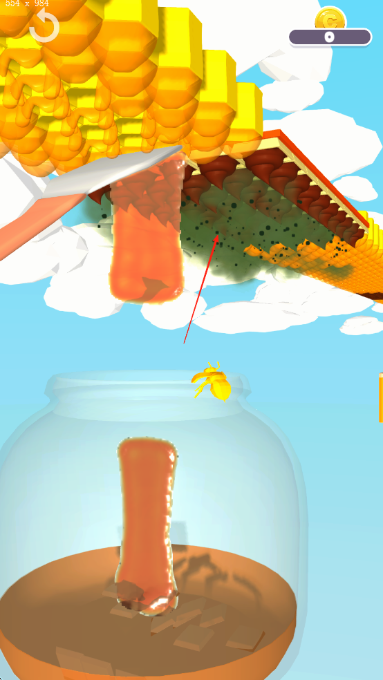 1、进入游戏滑动屏幕操控刮板在蜂巢表面移动,瞄准蜂蜜区域轻轻刮取,避开随机出现的便便、巧克力棒等杂质。