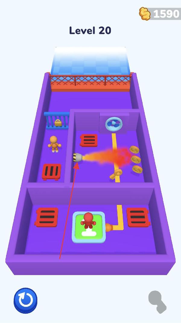3、利用场景机关(如Level20的风扇、喷火装置),躲避或干扰敌人,抵达终点通关。
