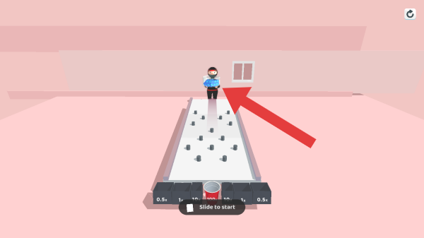 1、呈现的是游戏内的一个关卡场景,有忍者角色、陷阱飞刀阵,界面有【Slidetostart】提示,属于休闲益智类,以操控忍者躲避飞刀等障碍为玩法。