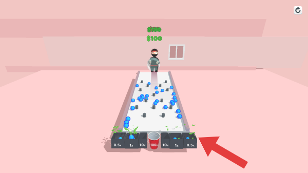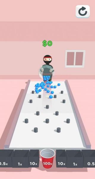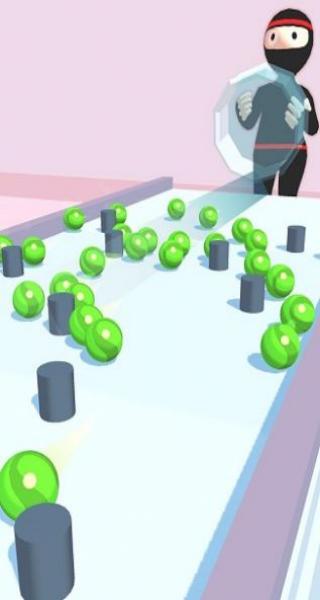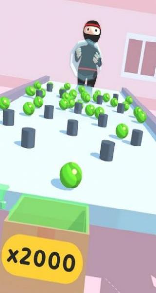 2、有忍者角色、蓝色小球(飞刀或道具)、上方显示金额($200、$100),下方有时间刻度等元素,属于休闲益智类,玩法围绕操控角色应对场景挑战展开。