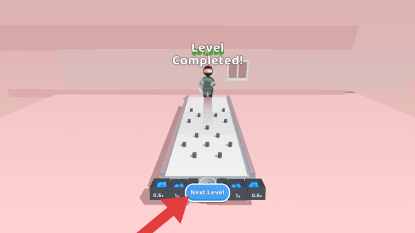 3、这是关卡通关界面,显示关卡完成,点击【NextLevel】(下一关)按钮,呈现的是角色成功通过当前关卡,可进入下一关的状态。