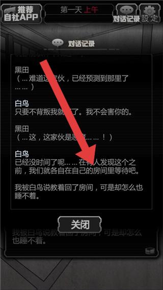 2、查看“对话记录”,梳理黑田、白鸟的对话逻辑,标记关键信息(“被说教回房间”“睡不着”),用于后续推理。
