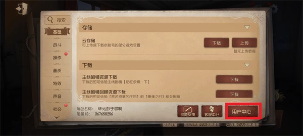 2、在设置界面中我们可以看到右下角的【用户中心】点击进入到其中;