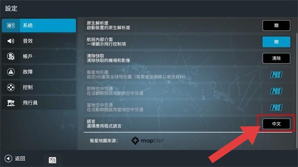 2、可以在设置的【語言】选项中,点击右侧【中文】的按钮,切换游戏显示语言为中文。