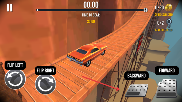 2、行驶至断桥处,提前用【FORWARD】加速,借助冲力飞跃,空中可通过翻转按键调整姿态,精准落在对面桥面,避免坠落句号。