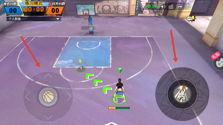 1、点击登录,左手虚拟摇杆控制跑位,右手戳屏幕完成抢断、传球、暴扣三连。
