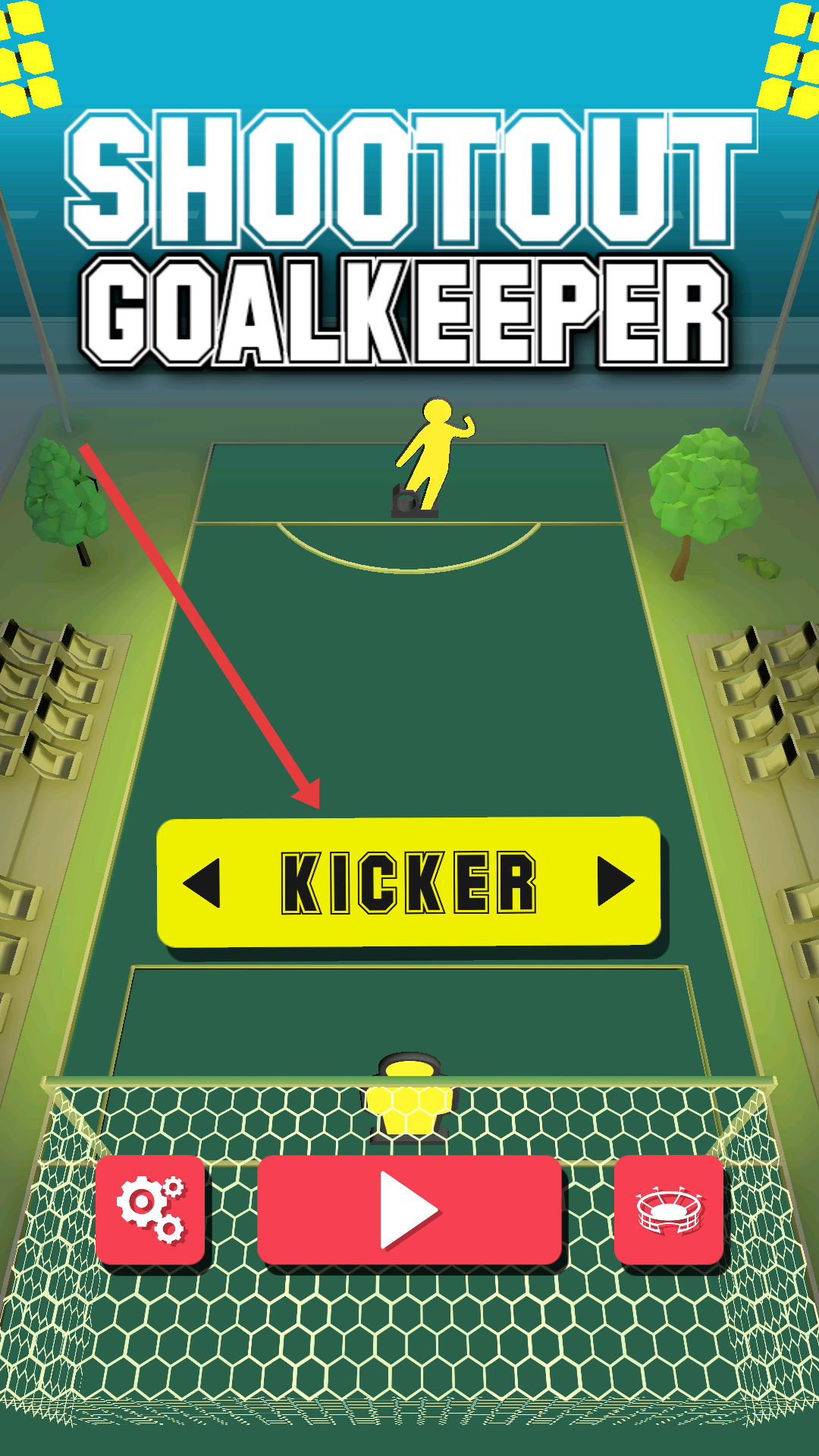 1、点击KICKER可选择角色,可扮演守门员或者点球的射手。