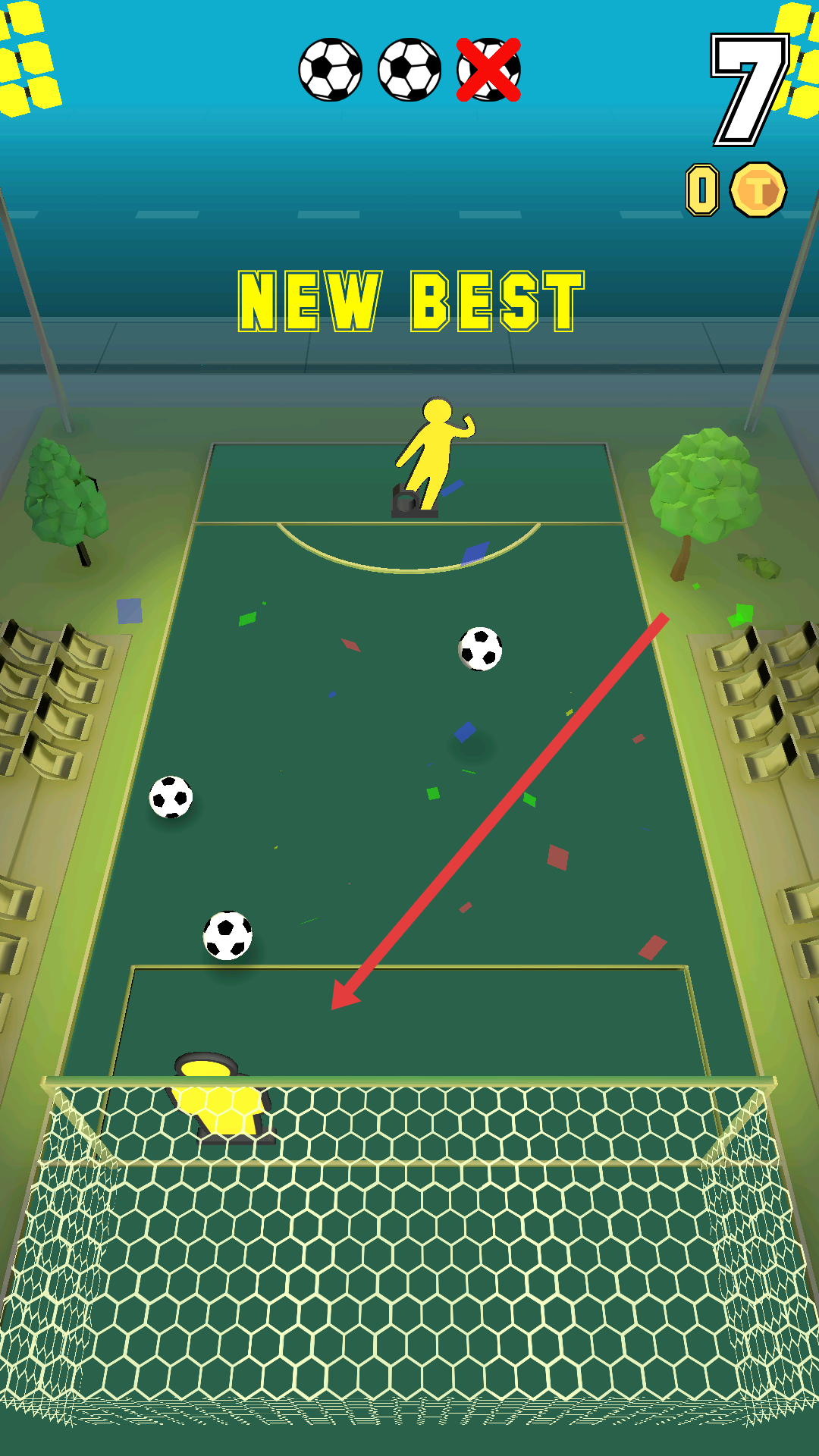 2、闯关模式:AI守门员难度从呆萌熊猫进化成读心机器人,最后一关的BOSS会嘲讽你的每个失误。通关后解锁的隐藏关卡里,球门会像打地鼠一样随机位移。