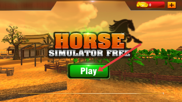 1、进入游戏的主界面,需要点击绿色【Play】按钮,开启驭马牛仔模拟器的模拟冒险。