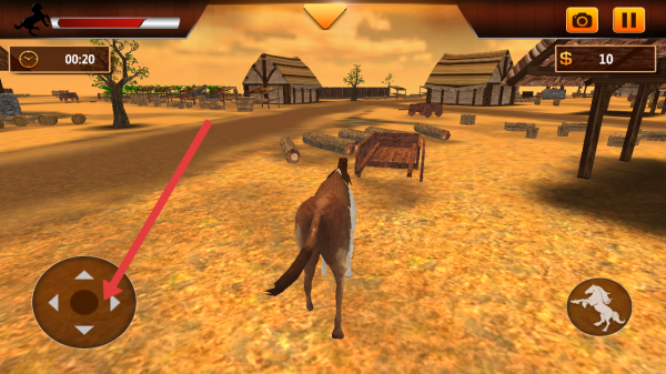3、游戏中通过左下角方向控制键,来操控自己的马匹在农场场景中移动,完成探索等任务。