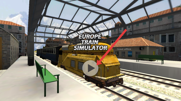 1、进入游戏的主界面,需要点击火车旁的播放按钮,启动欧洲大陆模拟火车的游戏。