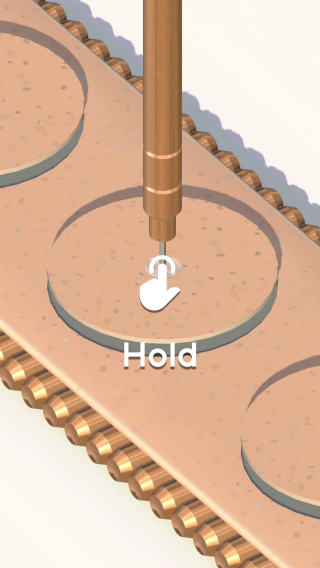 1、实体信息为呈现了模拟装配、操作类(是如汽车装配、机械组装等模拟玩法)中的一个交互步骤,显示【Hold】提示,引导玩家长按操作工具进行相应装配动作。