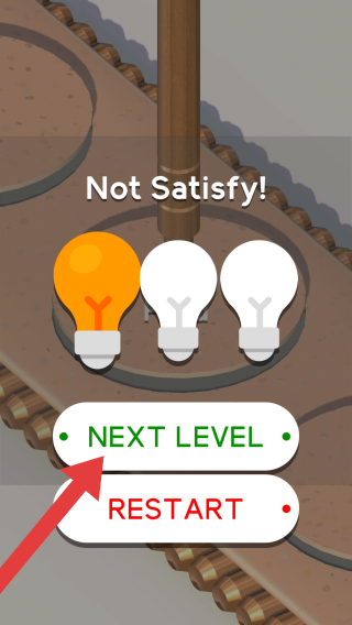 2、文字NotSatisfy!(未达标)、NEXTLEVEL(下一关),还有代表不同状态的灯泡,用于提示玩家操作未达标,可选择进入下一关或重新开始本关。