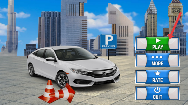 1、进入时尚跑车驾驶模拟器的游戏界面,点击右侧绿色【PLAY】按钮,开启停车挑战之旅。