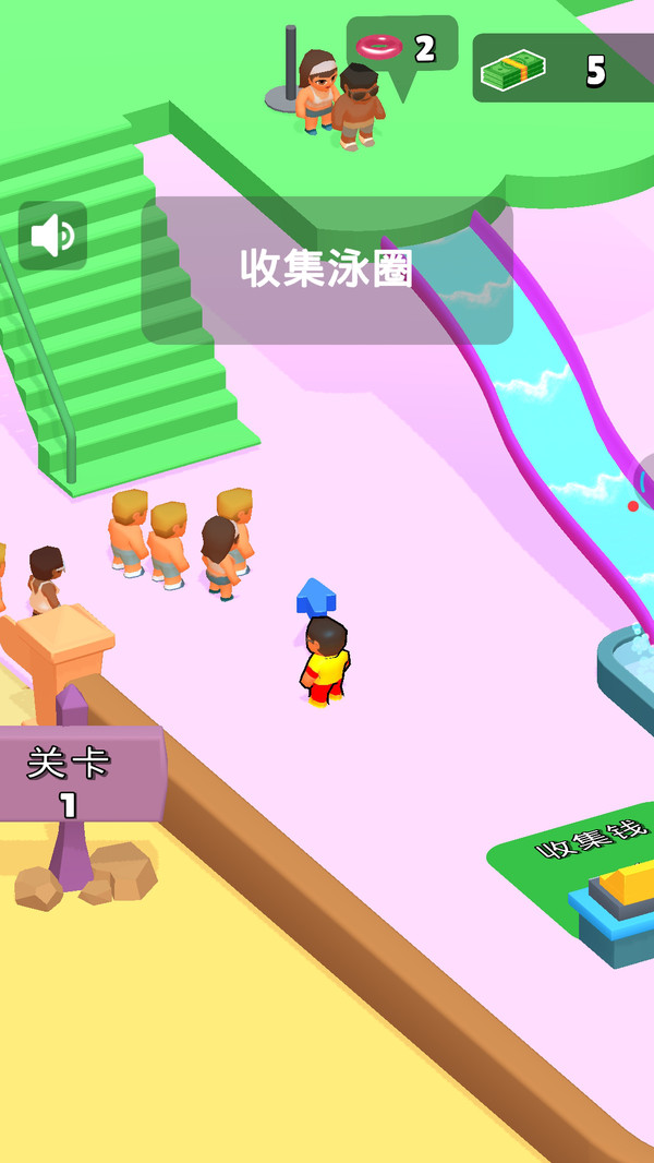 3、依据【收集泳圈】指引,到游客处收取泳圈(数字标识),回收后继续服务新游客。