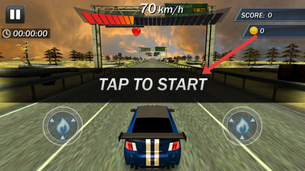 2、在赛道起始页面,点击屏幕中央【TAPTOSTART】,使赛车启动加速,开启比赛进程。